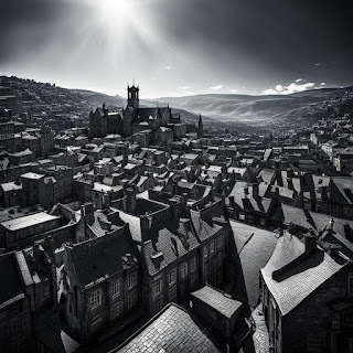 walk down avenuetree sparrows guide me part way;grey town bathes in sun