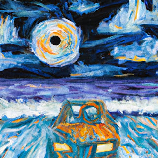 the wolf moon bringing stormy seas and angry waves; inside car in awe