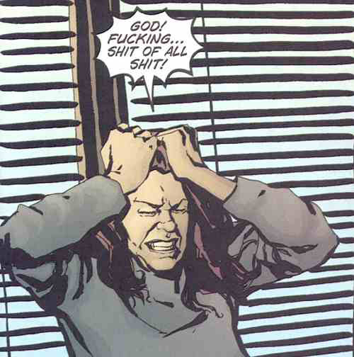 Turns out Alias is a heck of a title. As good of an adult comic as say The Walking Dead, or The Maxx, or dare we say anything by Frank Miller? The first word in the book is “Fuck” and Bendis does not shy away from profanity or realistic dialogue. Gritty content and a commitment to character development, Alias treats the superhero world is the backdrop. Cameos by Daredevil, Captain America, Jarvis, and other minor characters serve as setting, color, flavor.