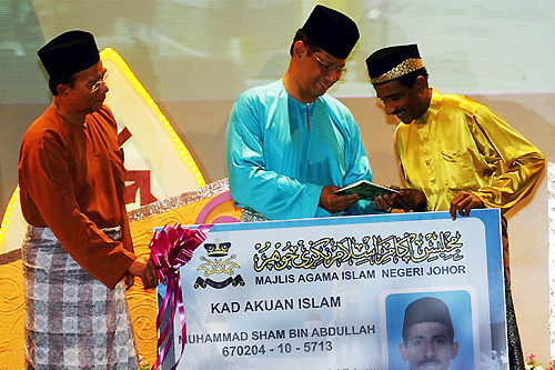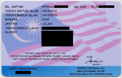 Whenever someone who register his/her reversion to Islam at Department Of Islamic Affairs, they will be issued an Islam Card that stated: