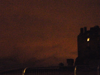 The castle was dark. In the early evening, the castle is often lit up; but this time it wasn't save for a solitary light in one of the windows.