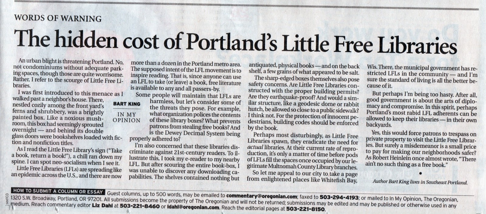 Hey, I done wrote something funny for the Oregonian.