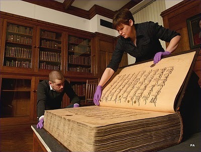 This is a huge Koran called the Koran of Kansuh al-Ghuri. Each page is the size of a plasma screen TV. (From the University of Manchester's John Rylands Library.)