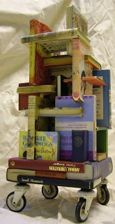 A gentleman named Wayne Chisnall created this eye-catching artwork. It's titled "Booktower II" because it's a tower of books ... and Chisnall already made "Booktower"!
