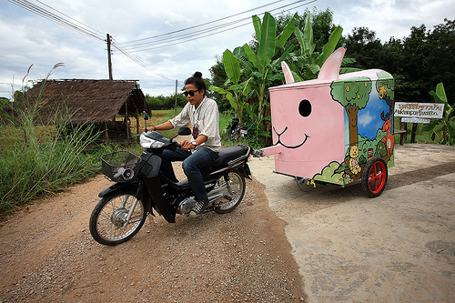 In Chiang Dao, Thailand, the Makhampom Foundation paid for decorated motorbike carts that carry children's books. These can be driven to reach children in villages that are inaccessible by bus.
