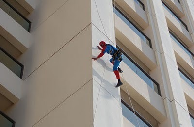 And if one of the window-washers falls, no worries. They'll just shoot Spidey web from their wrist and swing to safety!