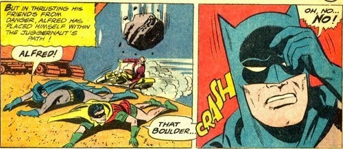 Answers below!1. True! While trying to save Batman, Alfred was crushed by a falling boulder (Detective Comics #328, 1964). Heartbroken, Batman took his butler’s body and stuck it in a refrigerated coffin. Luckily, a passerby walked by the coffin later, and heard Alfred’s weak moans. He was still barely alive!