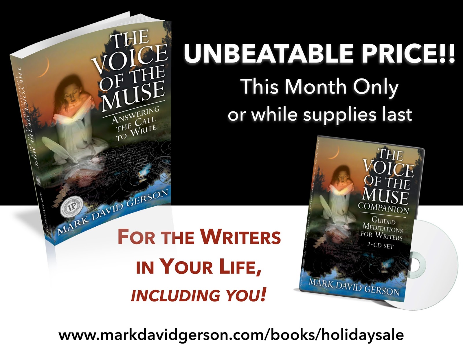 With the holidays coming up, I decided that it was the perfect time to take this "storage surprise," throw in some of the few remaining copies of my 2-CD album, The Voice of the Muse Companion: Guided Meditations for Writers, and create a Holiday Supersaver package for you at an unprecedented discount: The Voice of the Muse book and CD at a combined price lower than either sells for separately – $16.77. On top of that, I'm throwing in a bonus copy of The MoonQuest, absolutely free!