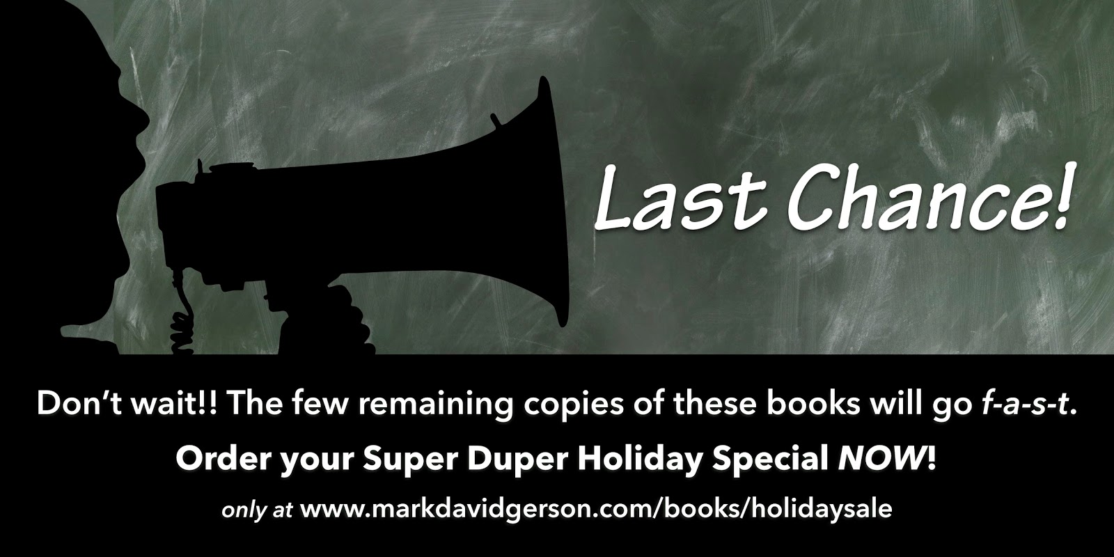 A few "fine print" details...• This promotion will continue through Oct. 31...or until these last copies of the two books are gone. Because I have a limited number left, I urge you to act now! (I'm also running low on the CD version of The Voice of the Muse Companion; so its days of availability are also numbered.)• I cannot sign copies of these super-sale editions. If you prefer signed copies, please order the new editions from www.markdavidgerson.com/books.• To make the process more efficient, all books will be shipped within 7 days of the end of the promotion.