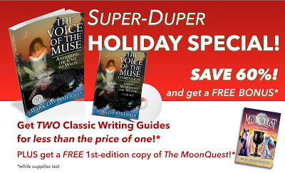 Even without the killer discount, The Voice of the Muse and MoonQuest books, along with The Voice of the Muse recording on CD, would make ideal gifts for both the writers and fantasy lovers on your holiday list...starting with you!