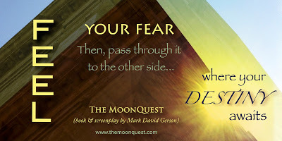 Courage, of course, is not the absence of fear. It is the ability to move forward in spite of fear. When in my first novel, The MoonQuest , Toshar is called to feel his fear, then pass through it to the other side where his destiny awaits, his fear-to-destiny journey was mine.