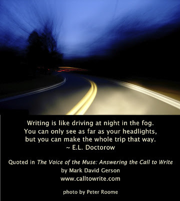 "Writing is like driving at night in the fog. You can only see as far as your headlights, but you can make the whole trip that way."~ E.L. Doctorow