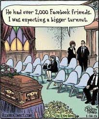 How many people will appear at your funeral?Thirty odd years ago, my father told me and my brother about his own father's funeral. He was in the one of the leading cars of the funeral procession travelling to the chapel. At one point, he looked back on the cars that followed and realised they reached back to the end of Main Street. That was close to two kilometres.
