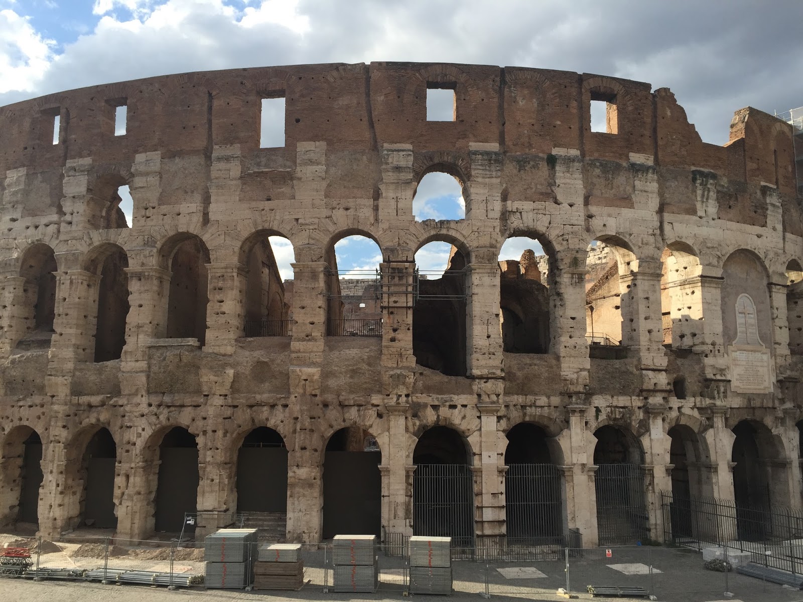 There is a cross inside the structure, and another on the outside. From my reading it seems that scholars now say that Christians weren't fed to the lions at this site. The consensus seems to be that most of the horrible treatment of Christians happened in the Circus Maximus at nearby Palatine Hill. Something I hadn't realized before my trip to Rome was that there were many amphitheaters. Gladiators and chariot racing were the entertainment of the time. It's interesting when you look outside these sites to discover the gymnasiums and training grounds of the gladiators nearby.