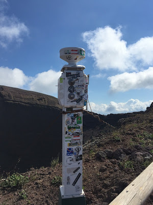 There are four gift shops along the path, selling oddities supposedly crafted from lava. Our tour guide recommended we nab a lava rock if we wanted a souvenir. She said it was free, legal, and they had plenty of them. Wisps of steam rise from the mouth of the crater. That's a good thing we were told. The locals said if the steam stops, run. There is equipment posted along the rim, and an evacuation plan for those living in the blast zone. It's believed that current technology could give residents a three-day notice of an impending eruption.