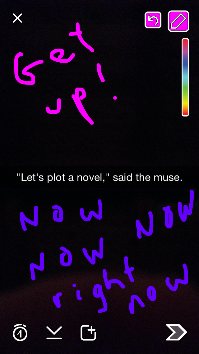 Well, thank God I drive a time travel jeep! Because I’m going to drag your aching bones right out of that bed and take you right back in time to today where I will stuff your yet-wasted hiney into the chair and duct tape your hands to the keyboard if necessary. Start writing. I’ll talk.