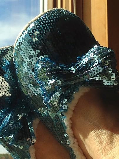 My name is S. R. Karfelt. I’m a reader, writer, wanderer, sparkly slipper wearer, and today I’m sparkling in blue. In an emergency these could double as a disco ball. And my feet aren’t nearly as big as they look in this picture. Okay, fine, they are, but wanderers need big feet.