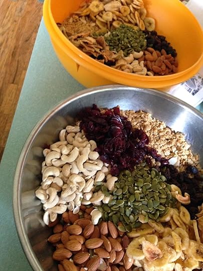 The idea of gorp is to turn your granola into food that is portable, filling, and nutritious. It’s whatever works for you, and I’ve modified mine over the years, and I also change it up depending on where it’s going. If it’s going to end up in the desert, it’s better not to put anything in that might melt. If it’s going on a rough hike, I make sure I add plenty of ingredients with protein and some salt.