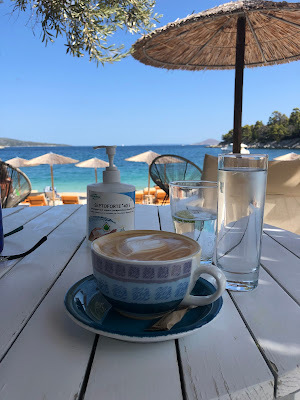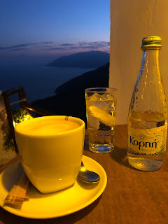 Outside of Athens, when I get to the tiny island I love to write at every summer, chai latte is hard to come by. Besides sitting at a café beside the Aegean Sea I suddenly like coffee. That's mostly because when I'm in Greece I pretty much like everything. I especially like the little design swirled into the top of my drink. I like to sit at an outside table with a cup. It reminds me how the only time I ever saw my grandmother not moving was when she sat at the kitchen table with a cup of coffee. Only, if I'm going to drink it my preference is a side of sparkling water and olives to get that coffee taste out of my mouth.