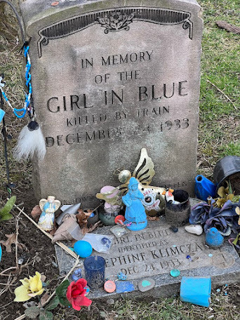 One of the most heart-breaking local legends was about The Girl in Blue. That's how we referred to her. In mental caps. The Girl in Blue is a hauntingly tragic story. Her tombstone reads: