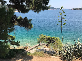 Obviously a moat isn't necessary to write but for this introvert peace and quiet is. I get that by running away and focusing only on writing. Nobody is going to interrupt from Alonissos. Sure, I could get that other places and on occasion I have. But I'm telling you an ocean makes an excellent moat and the Aegean Sea makes a gorgeous one. I highly recommend it.