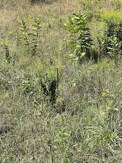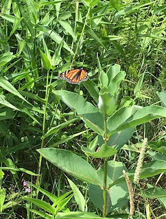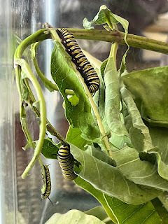 It started as a kindergarten project for my son. I volunteered to find milkweed and butterfly eggs. With no idea how to do that, I did what I always did, found a book about it. Then I searched parks, edges of the roadway, and examined weeds anywhere I could find them. Unsure if any of my weeds were milkweed or had an egg on it (it's amazing how many little dots of stuff are on weeds), I put the plants I had the most hope for into jars (with holes in the lids) and put them above the kitchen sink.