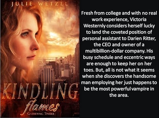 Julie Wetzel is the author of Kindling Flames, Book 1 in The Ancient Fire Series. Kindling Flames is scheduled to release through Crimson Tree Publishing in the Fall of 2014.