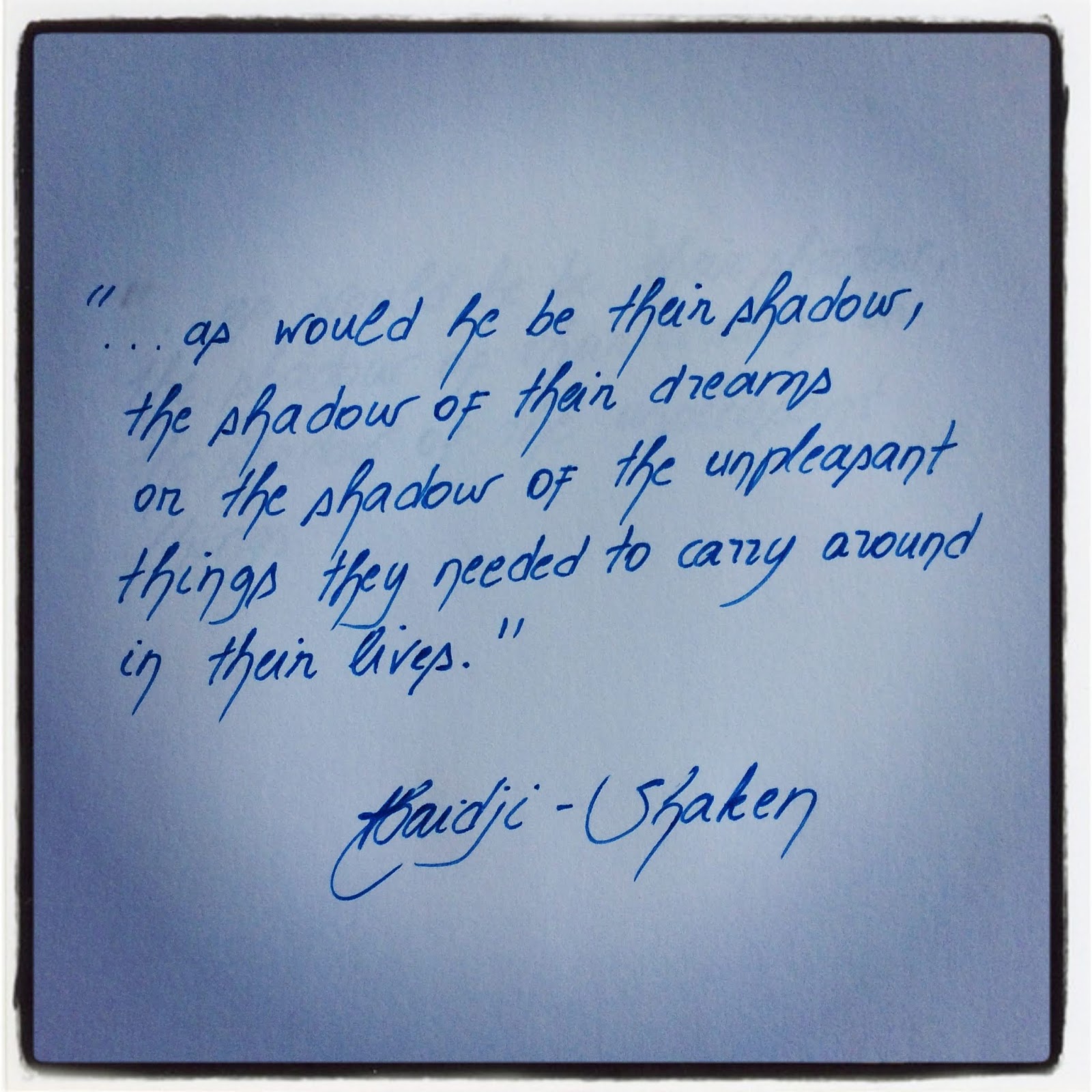 Book Quote" "...as would he be their shadow, the shadow of their dreams or the shadow of the unpleasant things they needed to carry around in their lives."