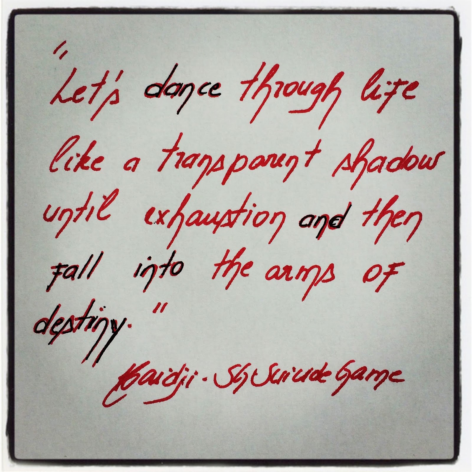Book Quote: "Let's dance through life like a transparent shadow..." Haidji - SG Suicide Game