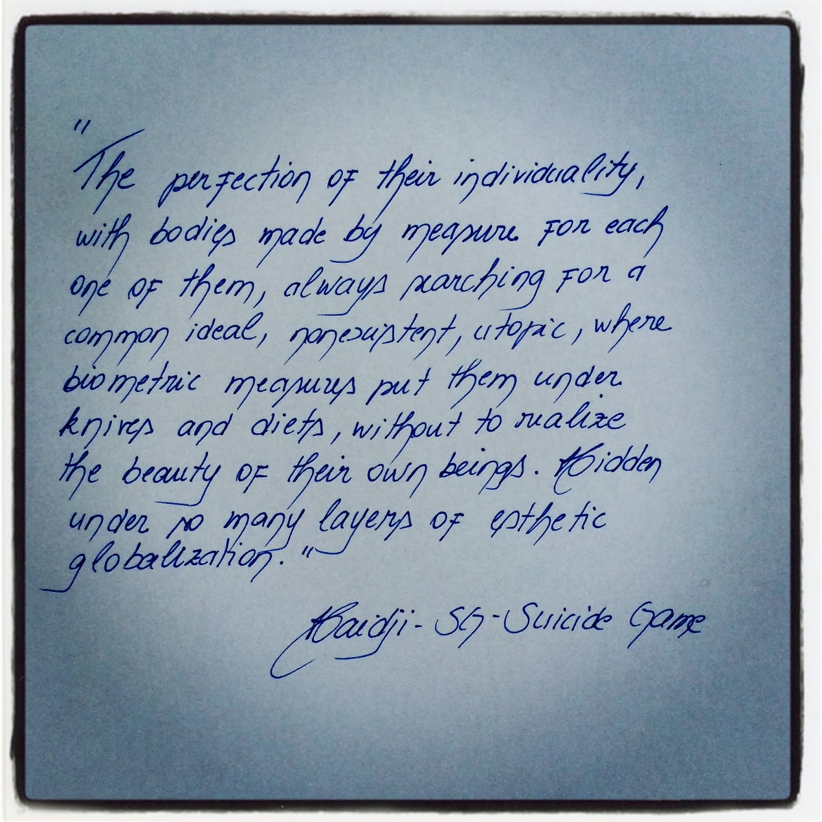 Book Quote; "The perfection of their individuality, with bodies made by measure for..." Haidji - SG Suicide Game