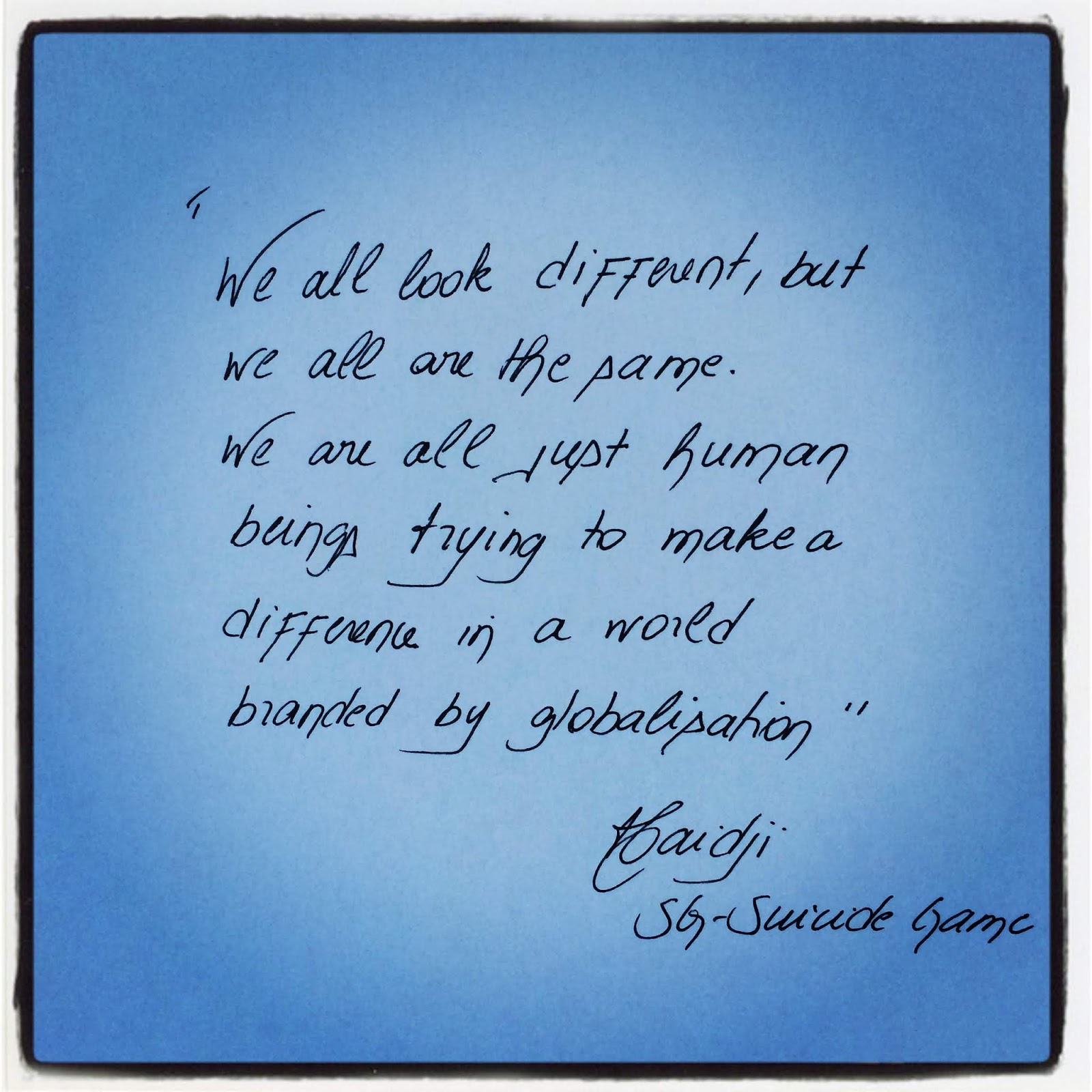 Book Quote: "We all look different, but we all are the same. We are all just..." Haidji - SG Suicide Game
