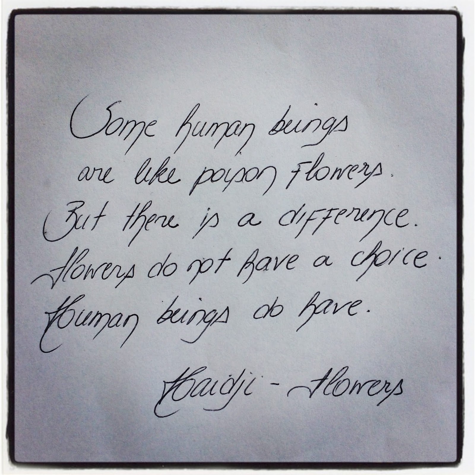 Book Quote: Some human beings are like poison flowers. But there is a difference. Flowers do not have a choice. Human beings do have." Haidji - Flowers - Harables-Short Stories 2