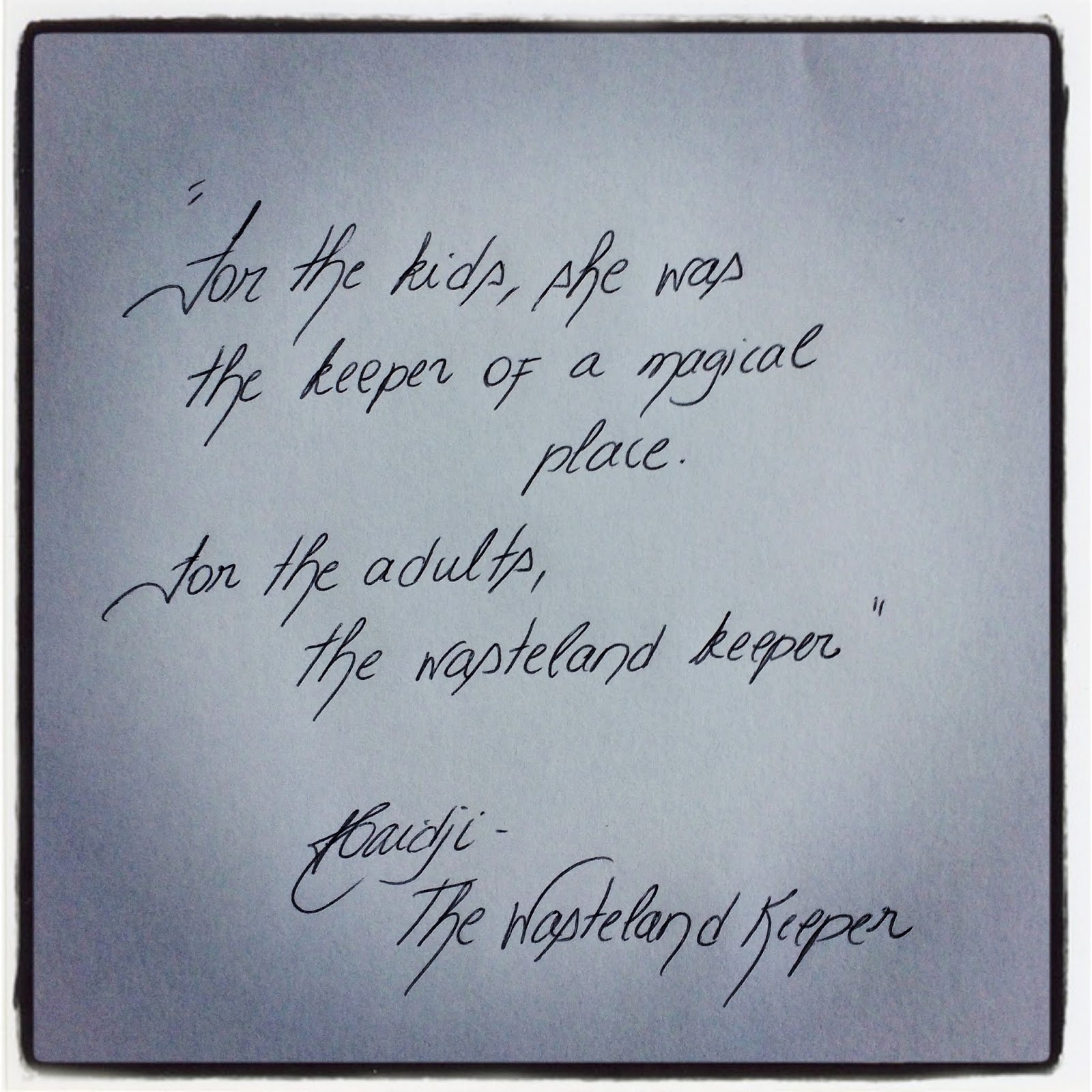 Book Quote: "For the kids, she was the keeper of a magical place. For the adults, the wasteland keeper." Haidji - The Wasteland Keeper - Harables-Short Stories 2