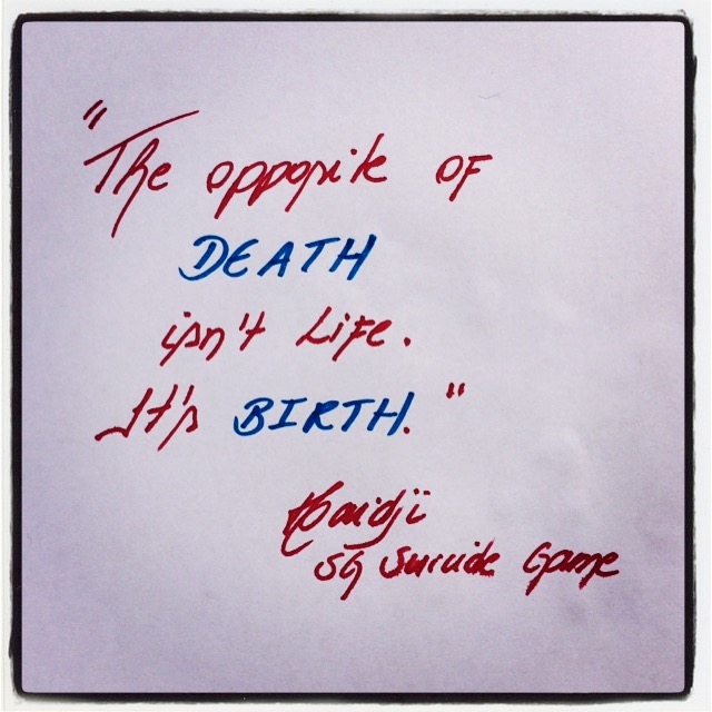 Book Quote: "The opposite of death isn't life. It's birth." Haidji - "SG Suicide Game"