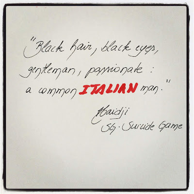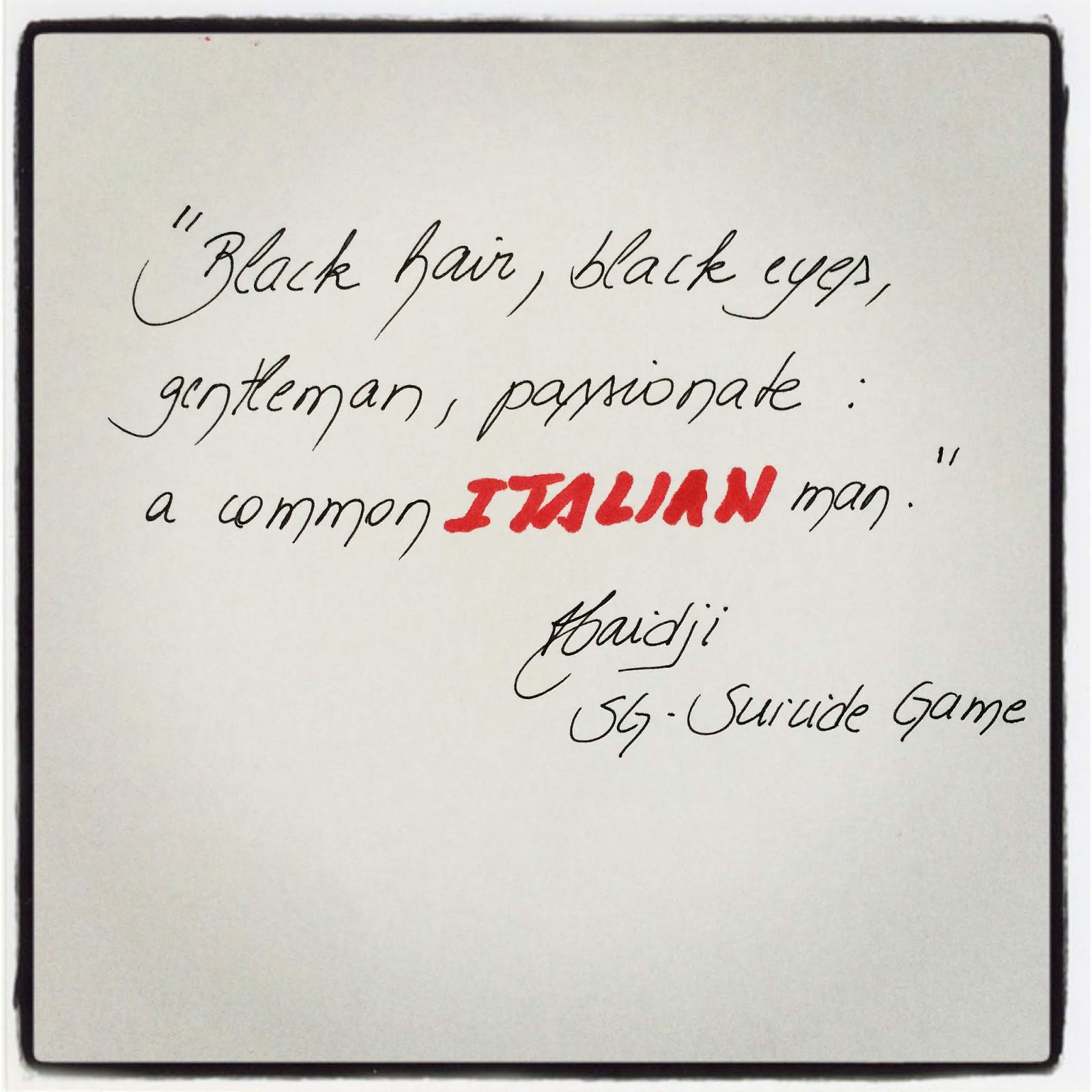 Book Quote: "Black hair, black eyes, gentleman, passionate: a common Italian man." Haidji - SG Suicide Game