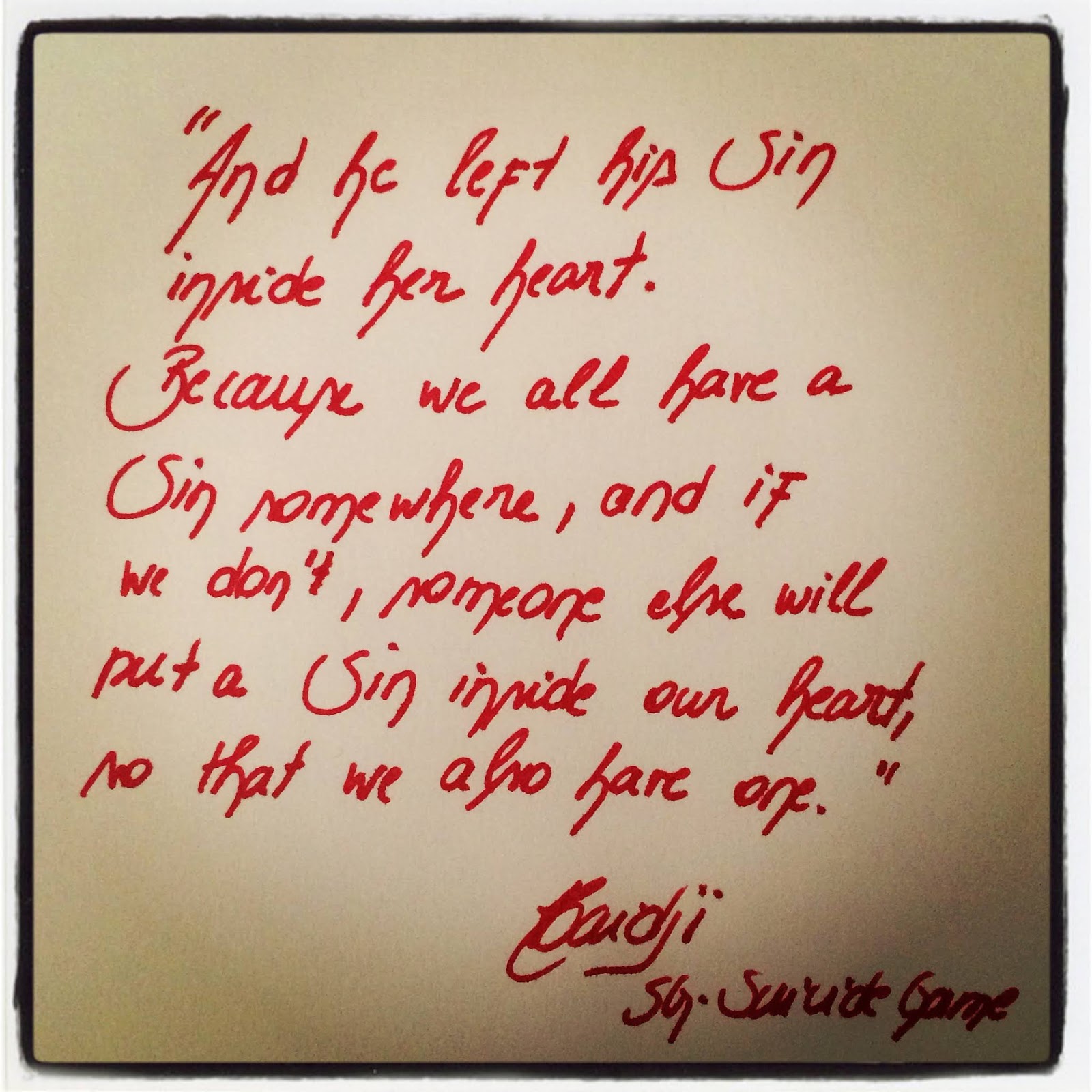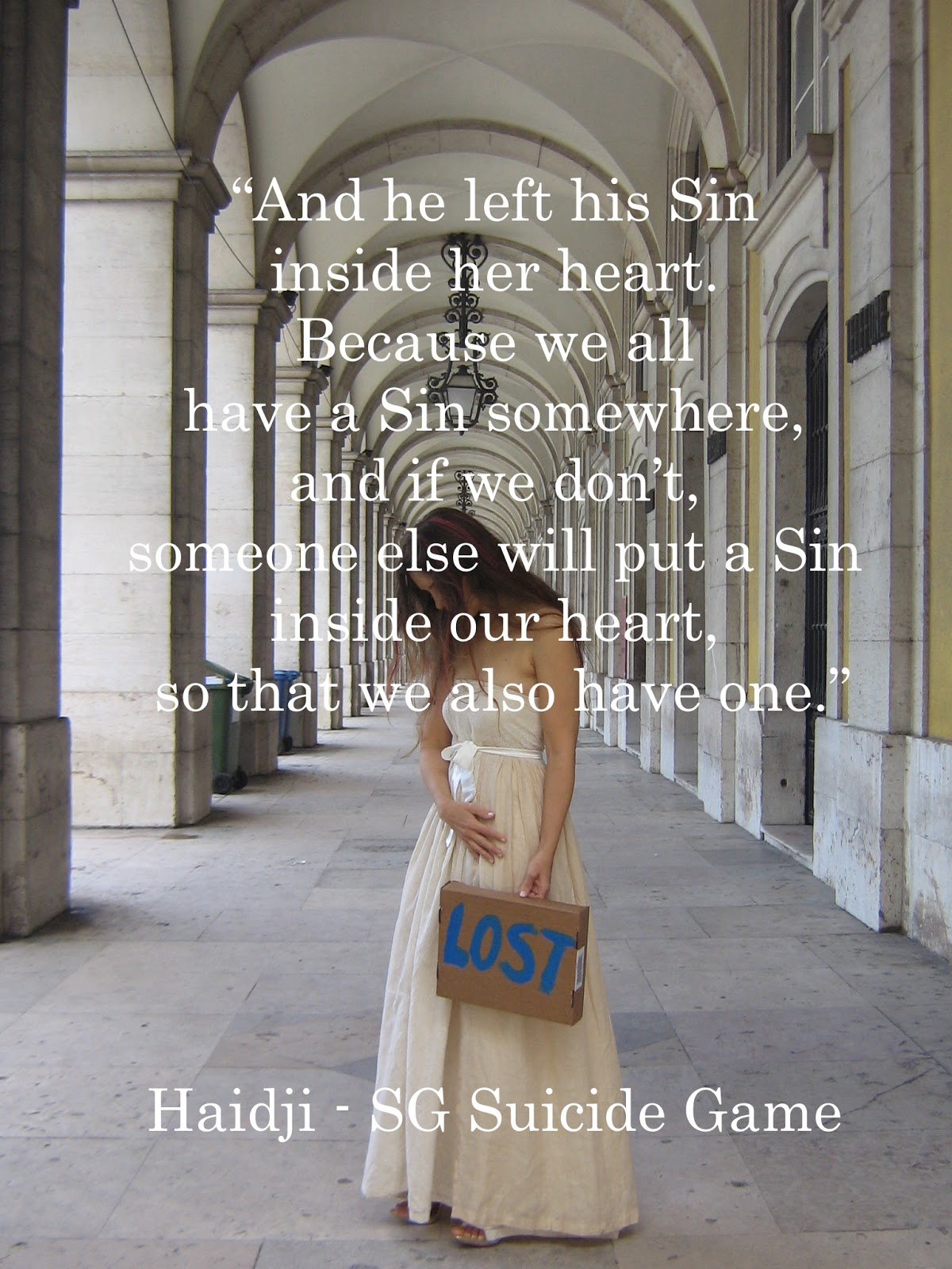 Book Quote: "And he left his Sin inside her heart. Because we all have a Sin somewhere, and if we don't,..." Haidji - SG Suicide Game