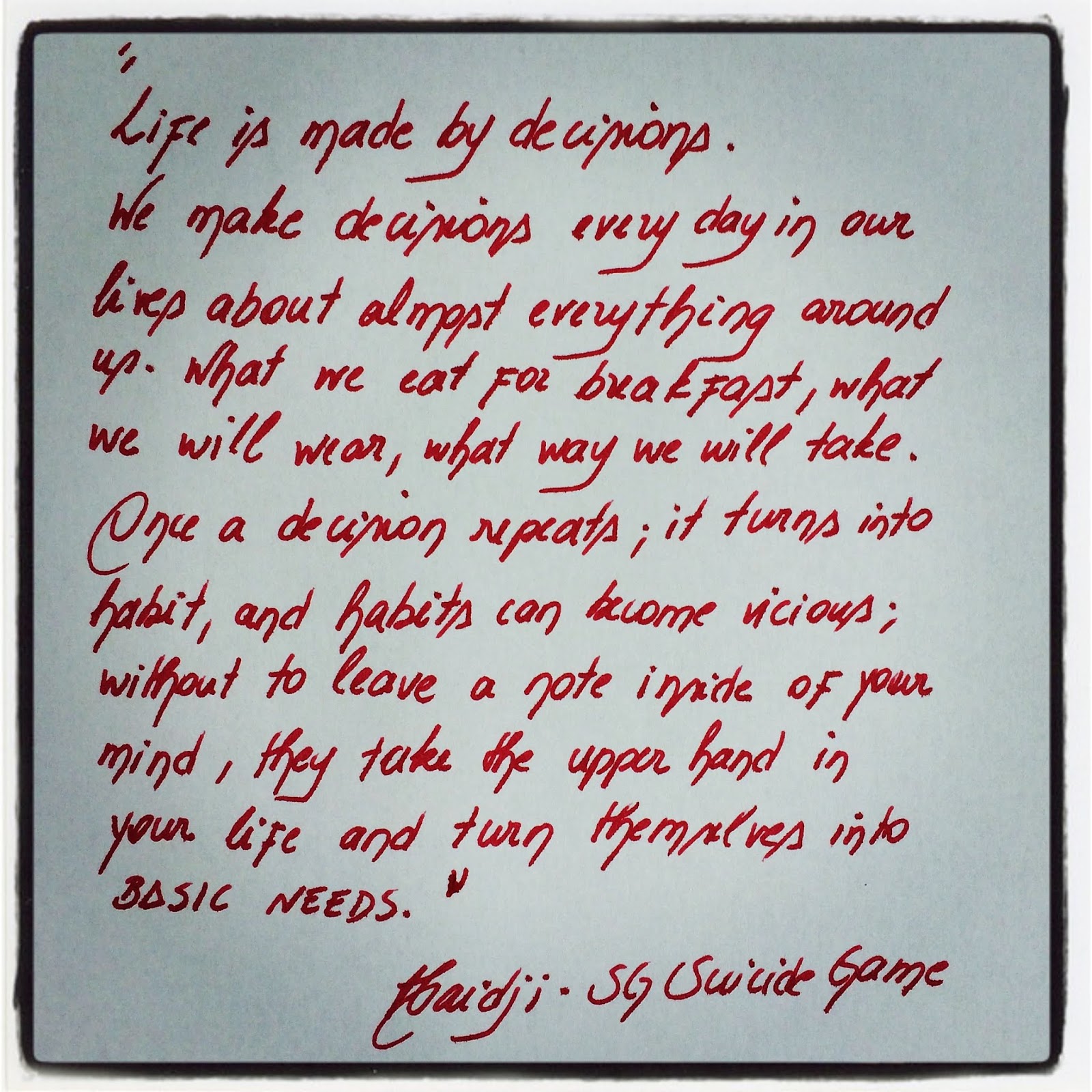 Book Quote: "Life is made by decisions. We make decisions every..." Haidji - SG Suicide Game