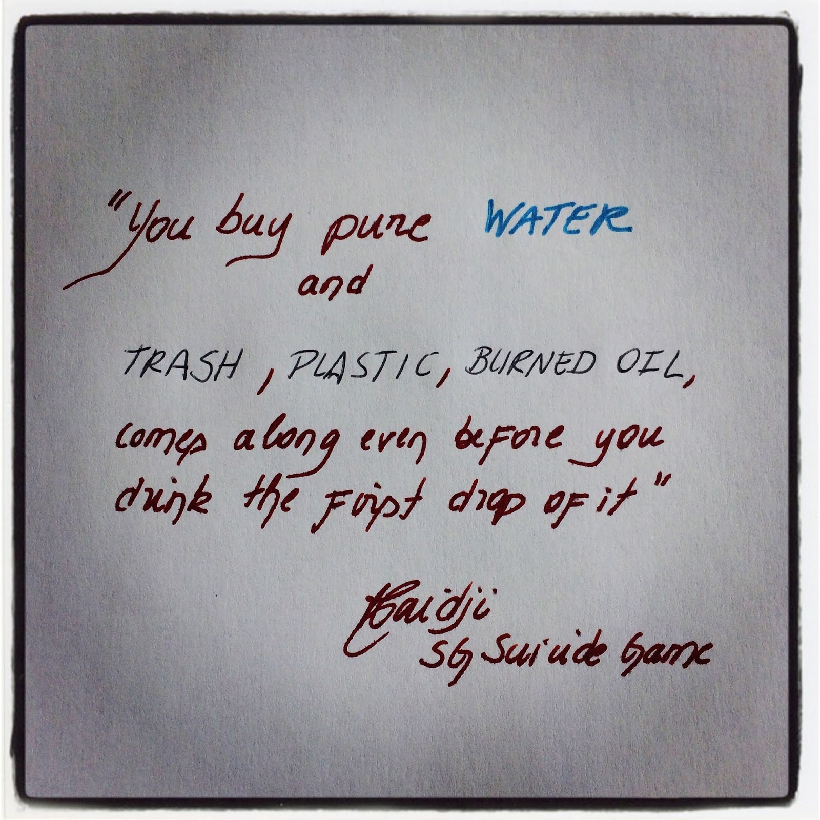 Book Quote: "You buy pure water and trash,plastic,burned oil, comes along even before you drink..." Haidji - SG Suicide Game