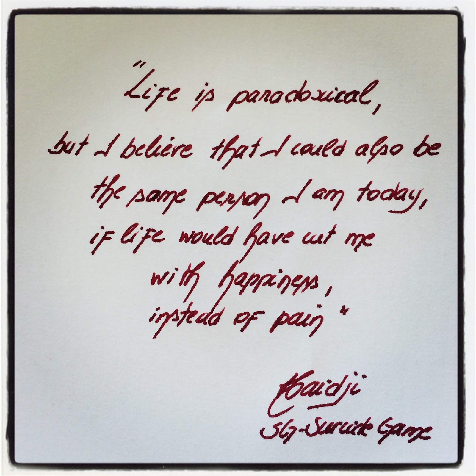 4-" Life is paradoxical,but I believe that I could also be the same person I am today, if life would have cut me with happiness,instead of pain.”