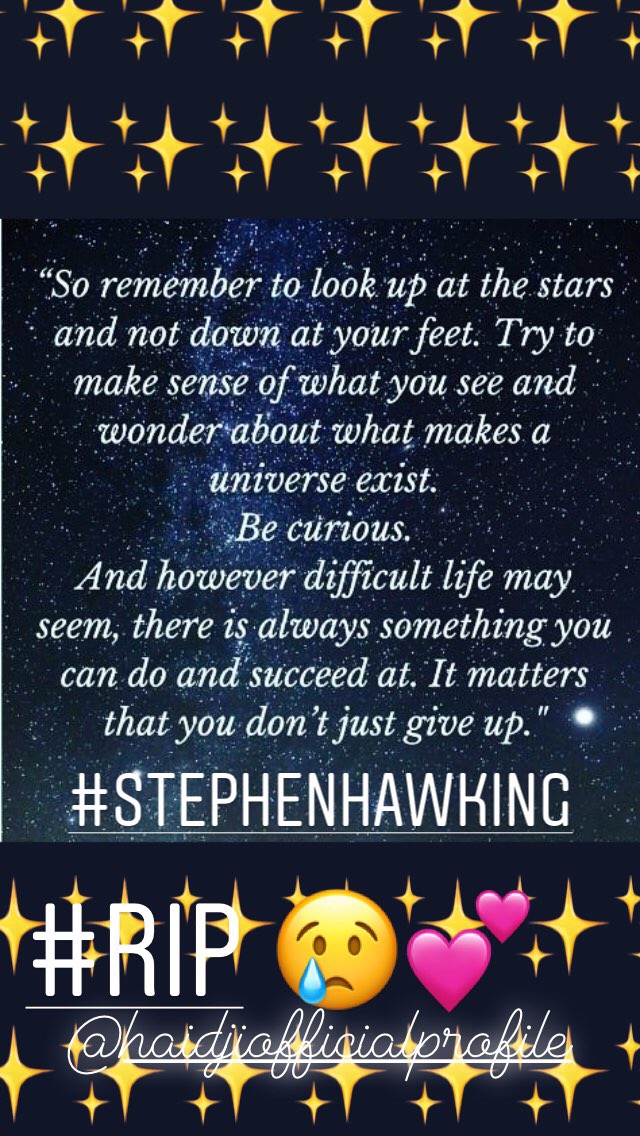 Stephen Hawking:Visionary physicist, cosmology's brightest star, a once in a generationgenius, dies at the age of 76 in his home in Cambridge, England.
