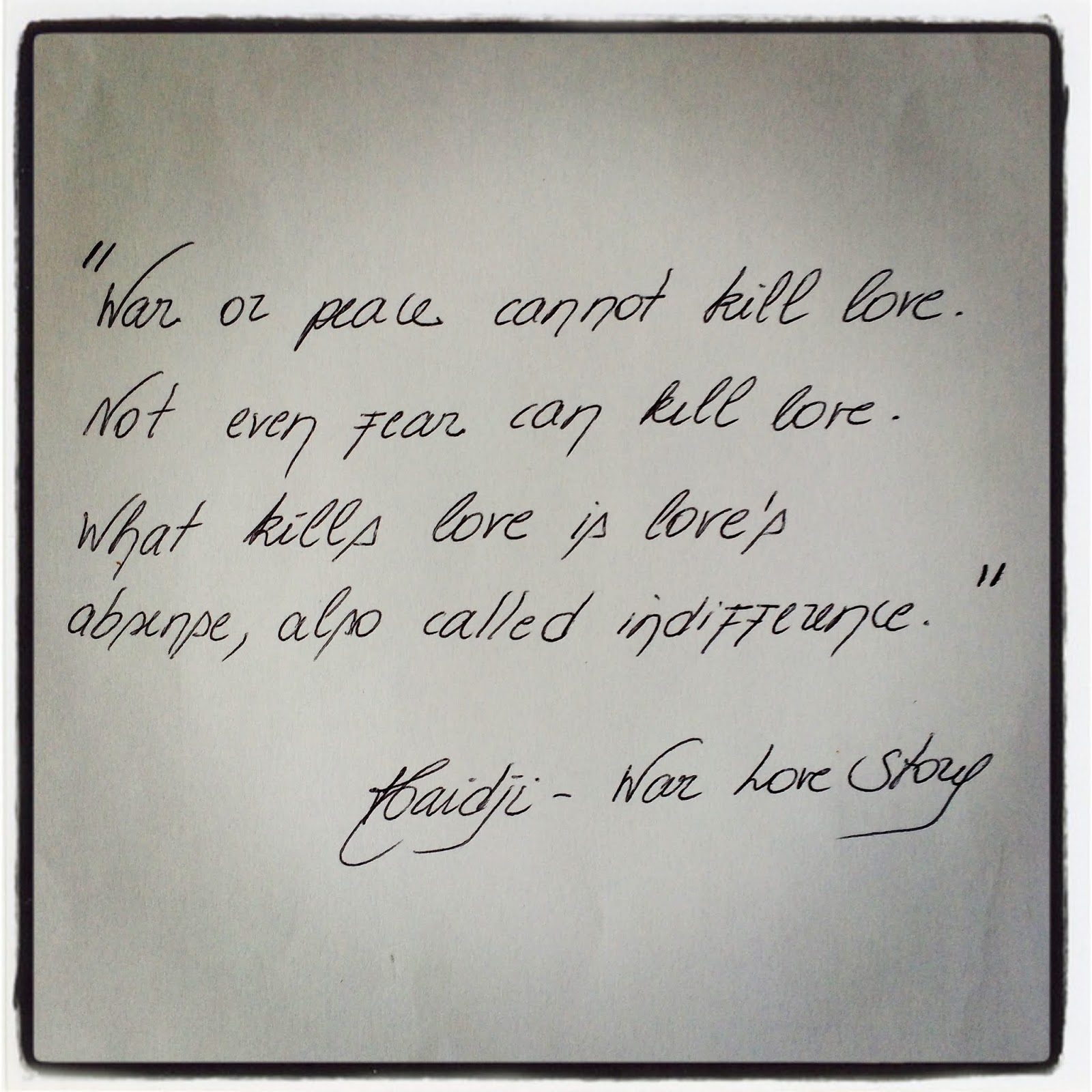 Book Quote:"War or peace cannot kill love." Haidji - "War Love Story" - "Harables-Short Stories 1"