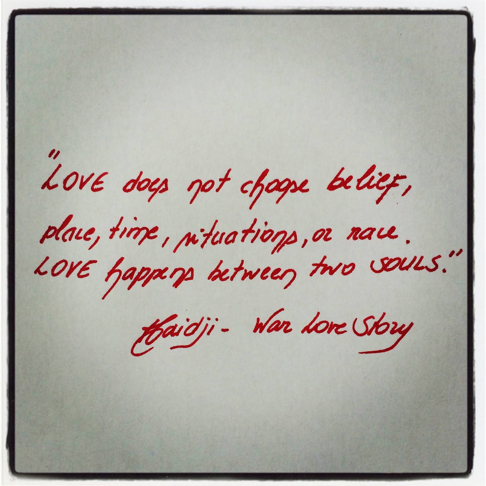 Book Quote:"Love does not choose belief, place, time, situations, or race." Haidji - "War Love Story" - "Harables-Short Stories 1"