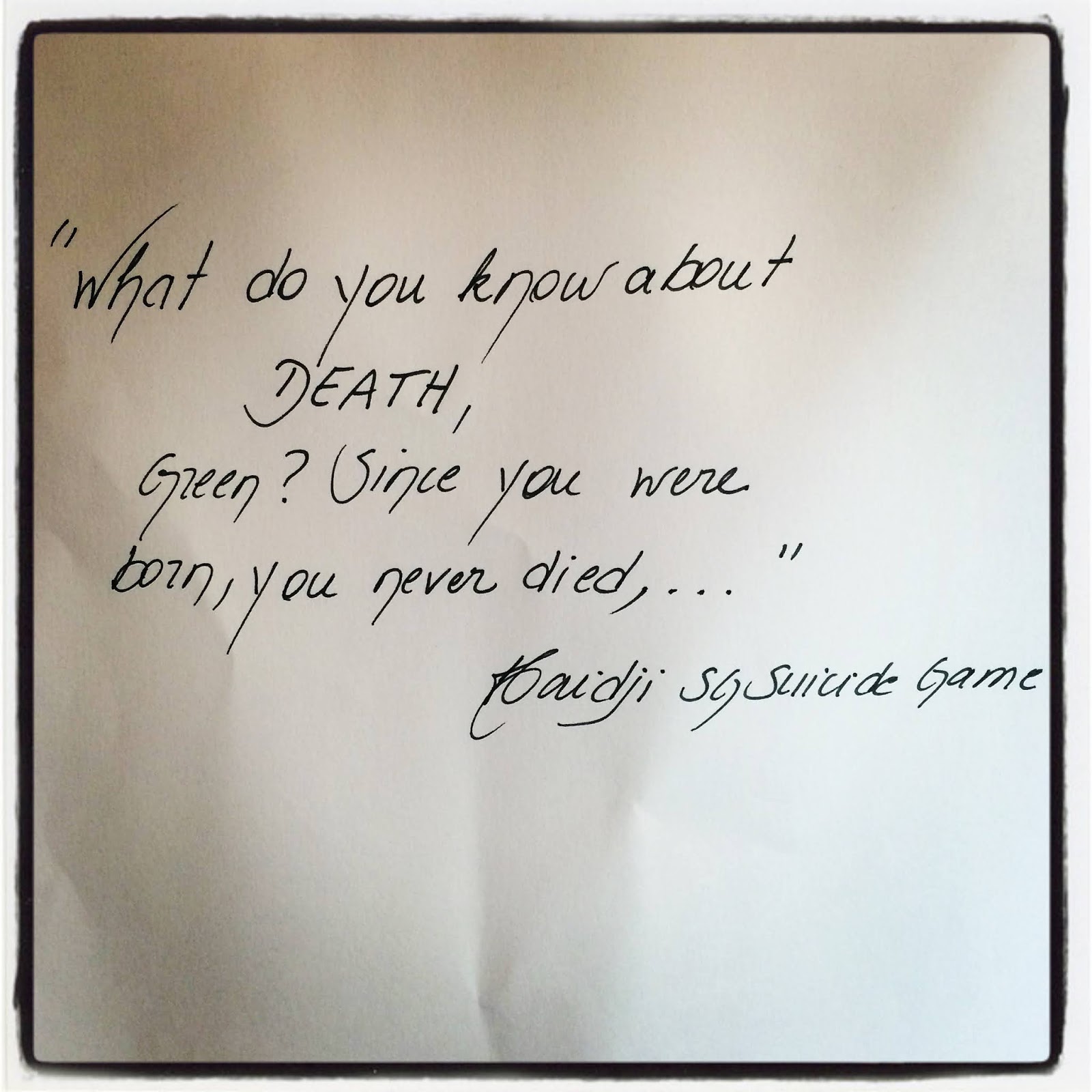 Book Quote: "What do you know about DEATH, Green? Since you were born, you never died,..." Haidji - "SG Suicide Game"