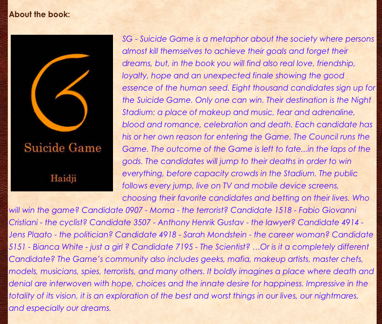 SG Suicide Game - Haidji - Book Summary - on Excellent Reviews