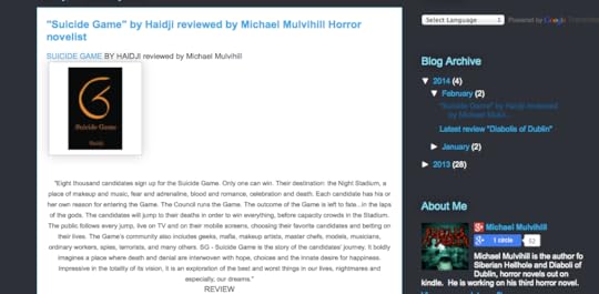 Dublin Horror Writer MICHAEL MULVIHILL : "SG-Suicide Game" by Haidji reviewed by Michael Mulvihill