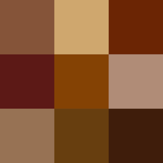 Image from WikipediaBrown-CoffeeWhiskeyAmberChestnutPeanut butterChocolateCocoaCinnamonNutmegMahoganyBronzeCopperSandSepiaCloveDirtMudWoodTree barkTanBeigeVanilla beanPotatoTaupe