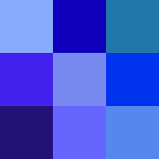 Image from WikipediaCobaltRoyalSkyDenimIndigoIrisPeriwinkleTiffanyTealTurquoiseNavySapphireMidnightOceanCeruleanCotton candyGreen –GrassAvocadoForestFernNeon