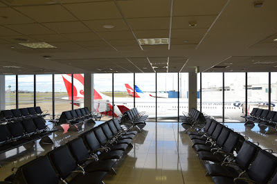 Image from WikimediaSize: Airports are normally huge and you often have to go from one section/floor to another to get to your gate. I once got lost trying to find my luggage! So make sure to mention the size and even let your frazzled character get lost, too.