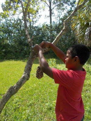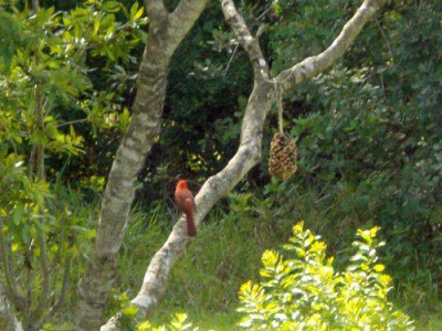 After my nephews and I put all the pine cones up, a Red Cardinal was already inspecting one.