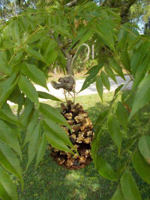 The next day, our pinecone birdfeeders were picked clean. One word…squirrels.